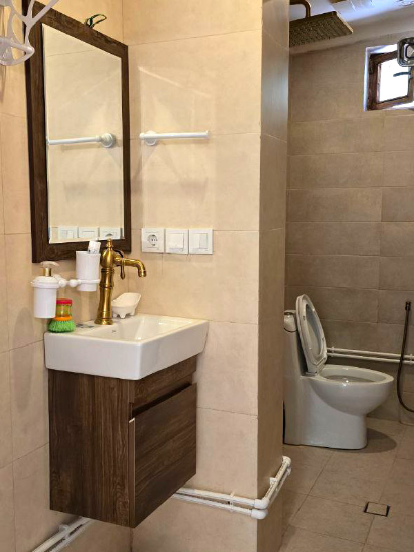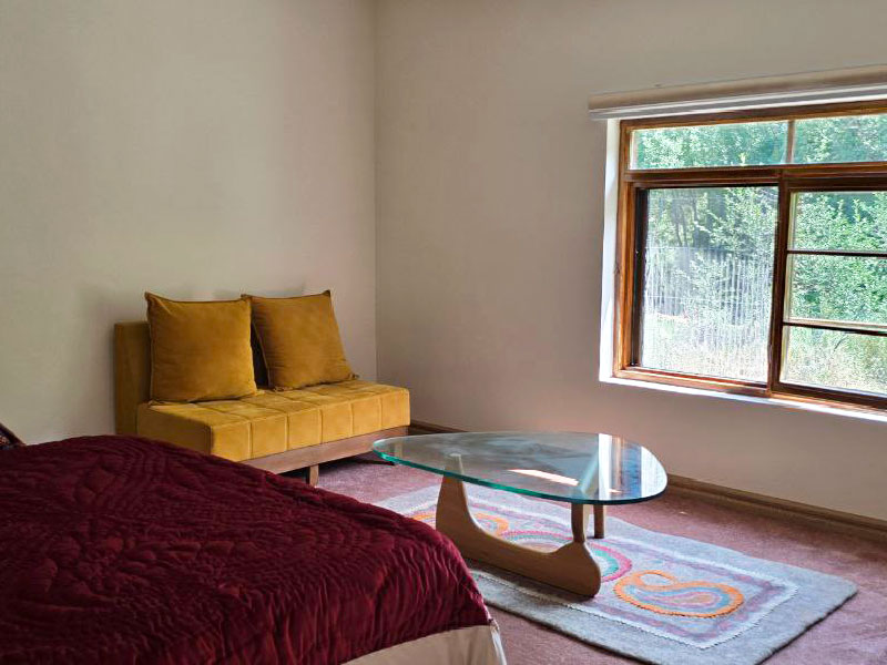 فضای این سوئیت گرم و صمیمی در بخشی دنج از خانهی روستایی قرار دارد و با طراحی ساده و امکانات کامل، اقامتی راحت و بیدغدغه را برایتان فراهم میکند. فضای این سوئیت دارای یک تخت دو نفره راحت، یک آشپزخانه اوپن با تجهیزات کامل (از جمله گاز، فر، ظروف پختوپز و سرو) و یک مبل راحتی برای استراحت در فضای نشیمن است. پنجرهها منظرهای زیبا از باغچه و کوههای اطراف را پیش رویتان میگذارند و تجربهای طبیعی و آرامشبخش را به شما هدیه میدهند. سوئیت دارای سرویس بهداشتی کامل شامل توالت فرنگی و حمام است و با یک بخاری گازی گرم میشود. این اتاق به طور ایدهآل برای دو نفر طراحی شده، اما در صورت نیاز میتواند بهراحتی برای سه یا حتی چهار نفر نیز مورد استفاده قرار گیرد.